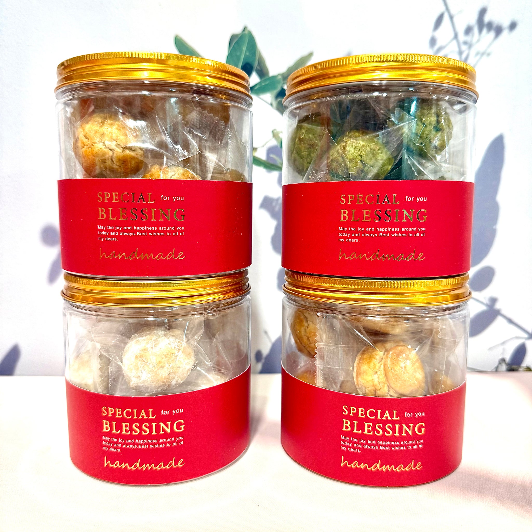 Ring in the new with heartfelt sweetness! This exquisitely designed gift set, adorned in traditional festive red and green, radiates prosperity and joy 🏮✨. Inside lie four cans of meticulously handmade crispy cookies: Cashew Cookies, Pistachio Cookies, Walnut Cookies, and Snowball Almond Cookies — each symbolizing good fortune and harmony for the coming year. Every bite is a celebration of flavour and care, making it the perfect gift to share warmth and reunion with loved ones ❤️.