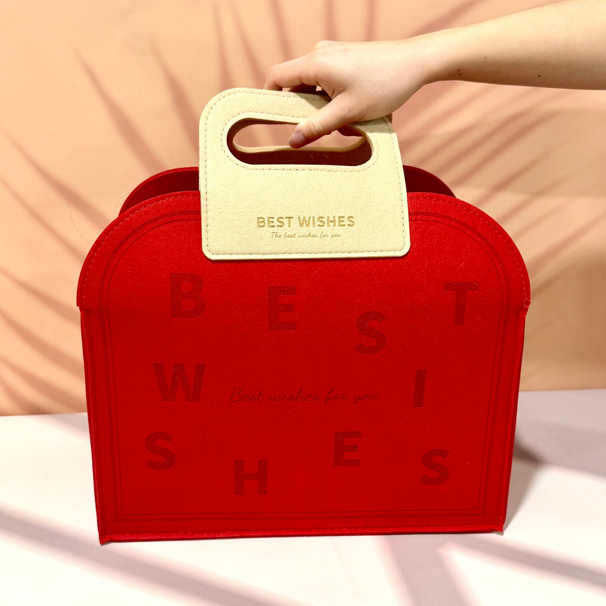 This modern Chinese New Year hamper, crafted in striking auspicious red, redefines luxury and festive spirit. Made from high-quality felt and adorned with bold gold wishes and motifs, it is a stunning visual treat that promises an equally delightful experience within.